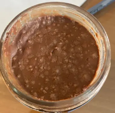 température récurrents, la tartinade se sépare rapidement, l'huile de la noisette remonte à la surface et le beurre de cacao également. Ce dernier recristallise sous forme de points blancs quand il fait un peu plus frais alors que l'huile de la noisette restera liquide.